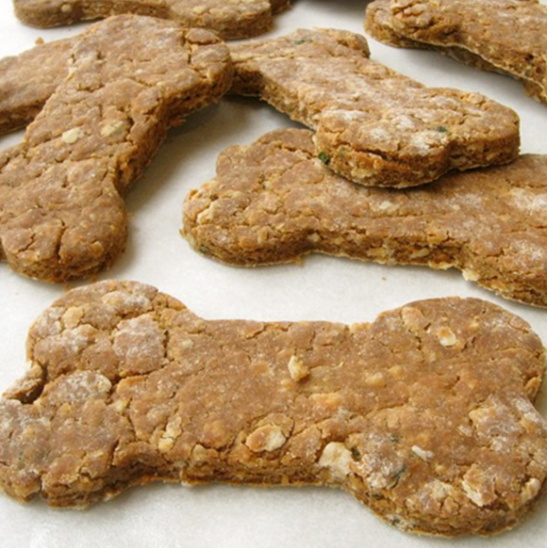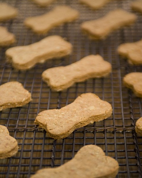6. Bake at 375°F for approx. 40 minutes or until biscuits are brown and, more importantly, rock-hard. Let biscuits cool, then store in a covered container five to six feet off the flour. Use as needed to reward your four-legged friends.)