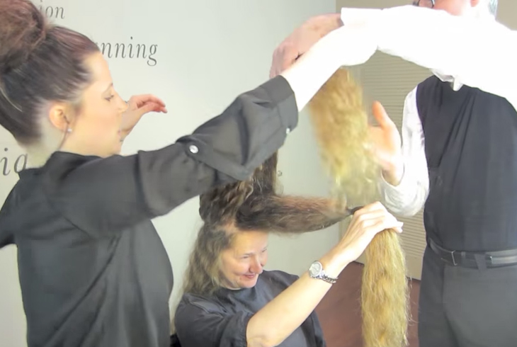 Cutting off more than a foot of hair was going to be shocking for the woman – that’s why he made sure that she was onboard with the plans! If not, the final product could be something that left her speechless in a bad way.
