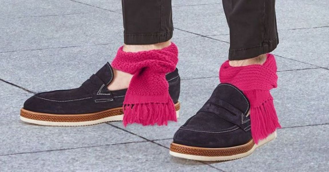 The unusual trend was first featured by Lercio, which is an Italian publication based in Milan which showed photos of tiny knitted scarves wrapped around a model’s ankles.