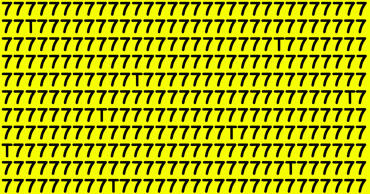It is a yellow background image filled with lots of 7’s. But in a few spots, there are also a few hidden T’s. Because the number and the letter are so similar, this can deceive your eyes.