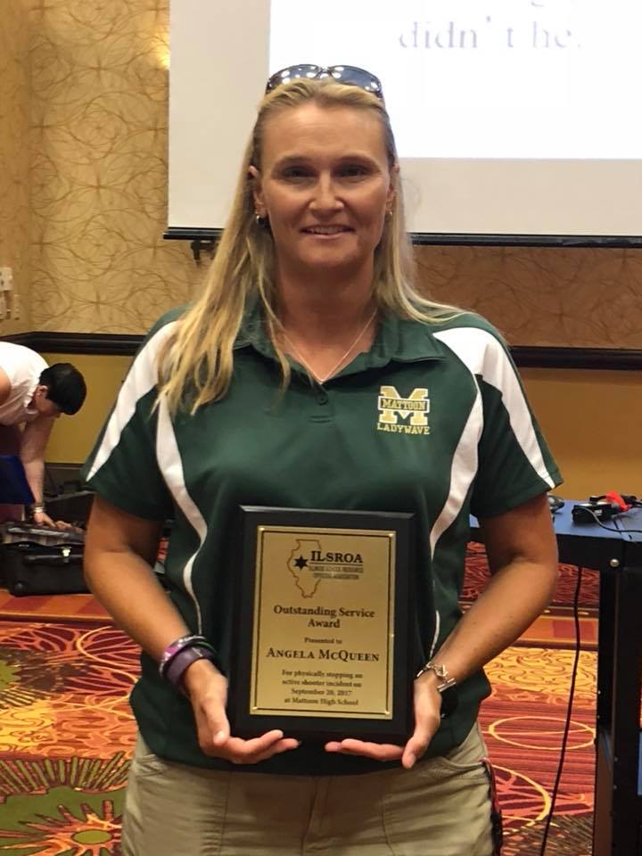 “I sprang into action because I looked over and I saw a student pull a gun out and he was aiming it at students to his right,” Angela said in a video released by the Illinois Education Association.