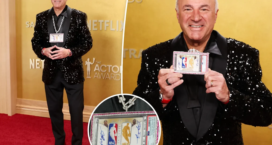 The investor-turned-actor walked the carpet with his wife, Linda O’Leary, wearing a Michael Jordan–Kobe Bryant autographed basketball card as a necklace—customized with a diamond-encrusted Tiffany frame and dazzling chain. While O’Leary admitted he wasn’t sure how much the bespoke bling added to the card’s value, a similar—but far smaller—Tiffany chain retails for $275,000.