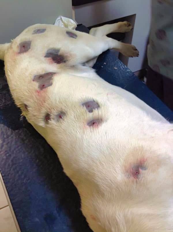 In fact, the sheer number of bullets meant Jackson’s vet needed to remove close to all of the dog’s coat. Otherwise, it would have been impossible to extract the pellets. The vet found twenty-seven BBs all up, twenty of which couldn’t be removed.