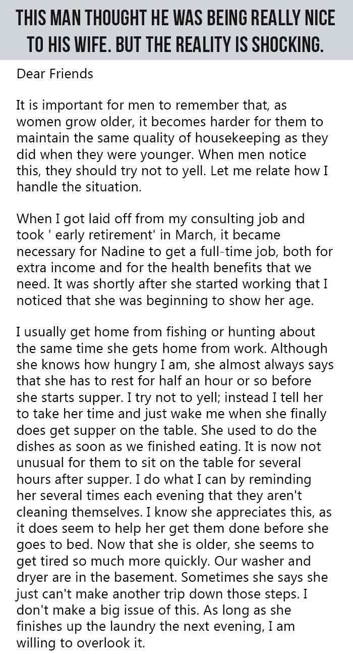 Retirement doesn’t mean you get to order your wife around anytime and anywhere you want. Doesn’t she get to retire too? Here’s a fun twist that should make you think about appreciating that wife (or mother!) in your life for the things they do for you.