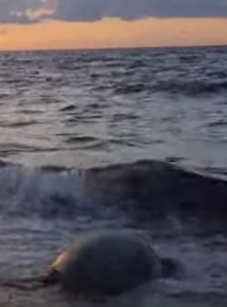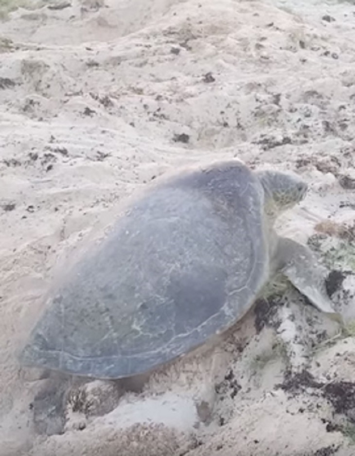 It was amazing that the sea turtle had clung on to life for as long as she did. Steve sat by patiently as the turtle regained her bearings and started to crawl toward the water.