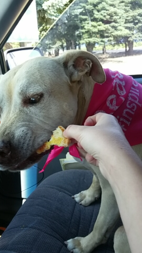 Chances are that this sweet girl doesn’t get so much delicious people food every day.