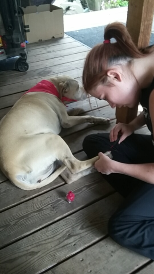 So, she made the incredibly tough and brave choice to put her dog down, painlessly and with people she loves all around her.
