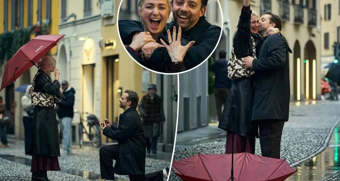 Jean-Luc Baker and Olivia Smart share a celebratory embrace after their engagement on February 14, 2026.