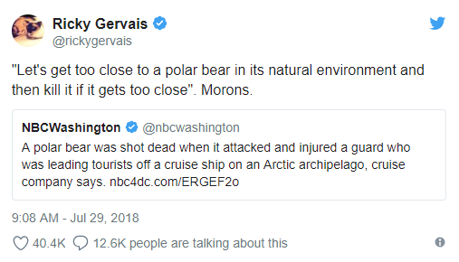 “‘Let’s get too close to a polar bear in its natural environment and then kill it if it gets too close,’ Morons,” he said.