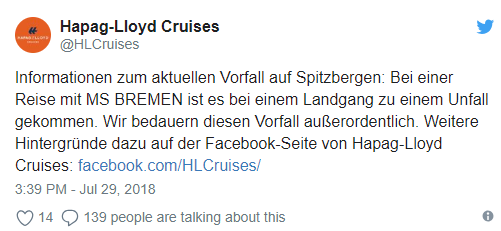However, tourists were not there when a ‘polar bear guard’ shot dead the animal at the weekend. According to Hapag-Lloyd Cruises, a crew member of the “Bremen” had gone ashore with other guards.