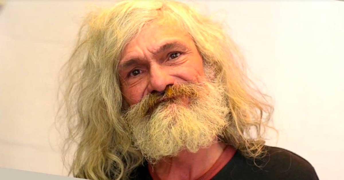 The salon films Jose’s transformation as the stylist cuts and buzzes layers of the man’s tangled gray locks and painstakingly trims his beard.