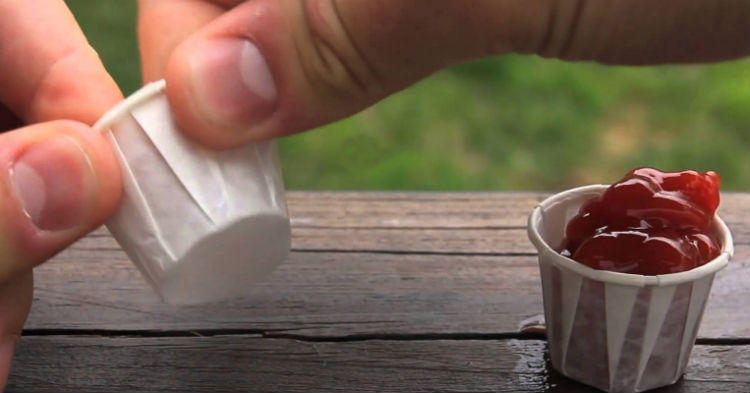 And he is absolutely right. As you’ll see in the nearly 3-minute video, he breaks down the process and shows you how to use these ketchup cups better.
