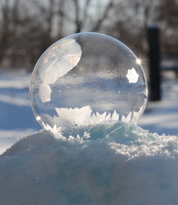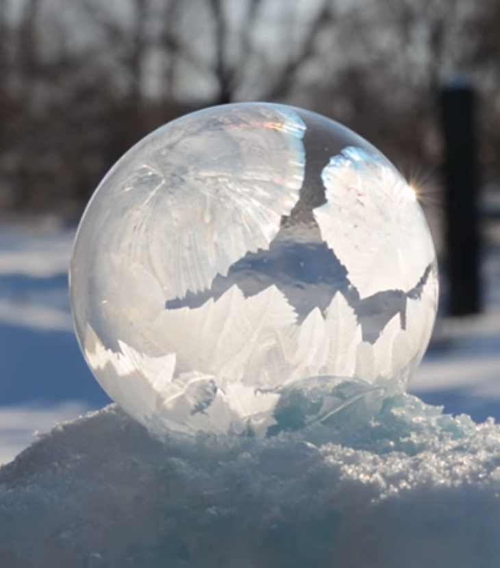 Well, Gloria Allwin remembers those happy days and she proves that you’re never too old to tap into your inner child. She recorded this video of a perfectly round soap bubble that she created, which was gently placed onto a mound of snow.